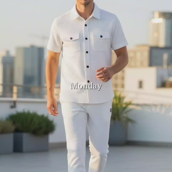 New Safari Honeycomb Waffle Design Tracksuit Set (Button shirt+Trouser) • ORIGINAL Grey