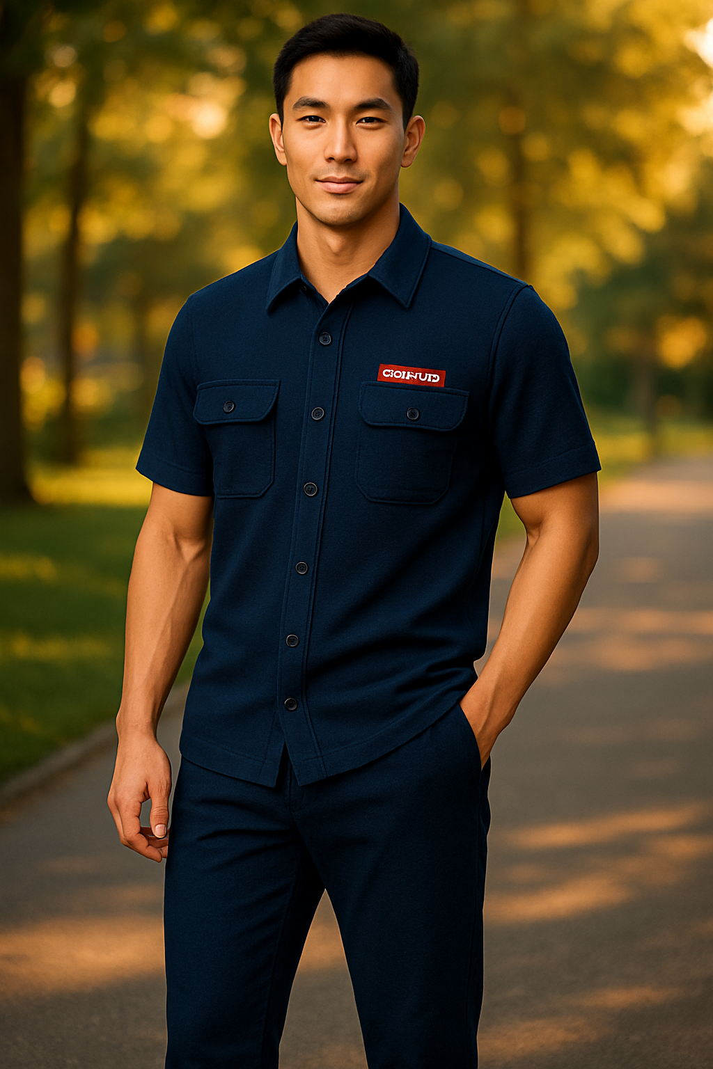 New Safari Waffle Design Tracksuit Set (Button shirt+Trouser) Blue