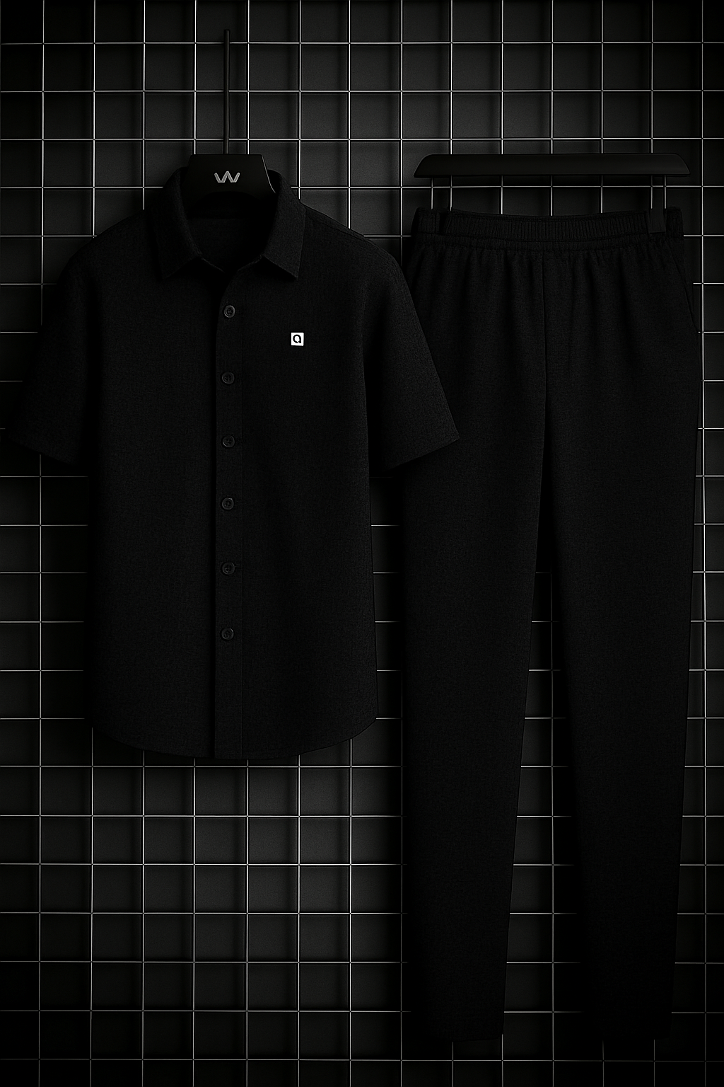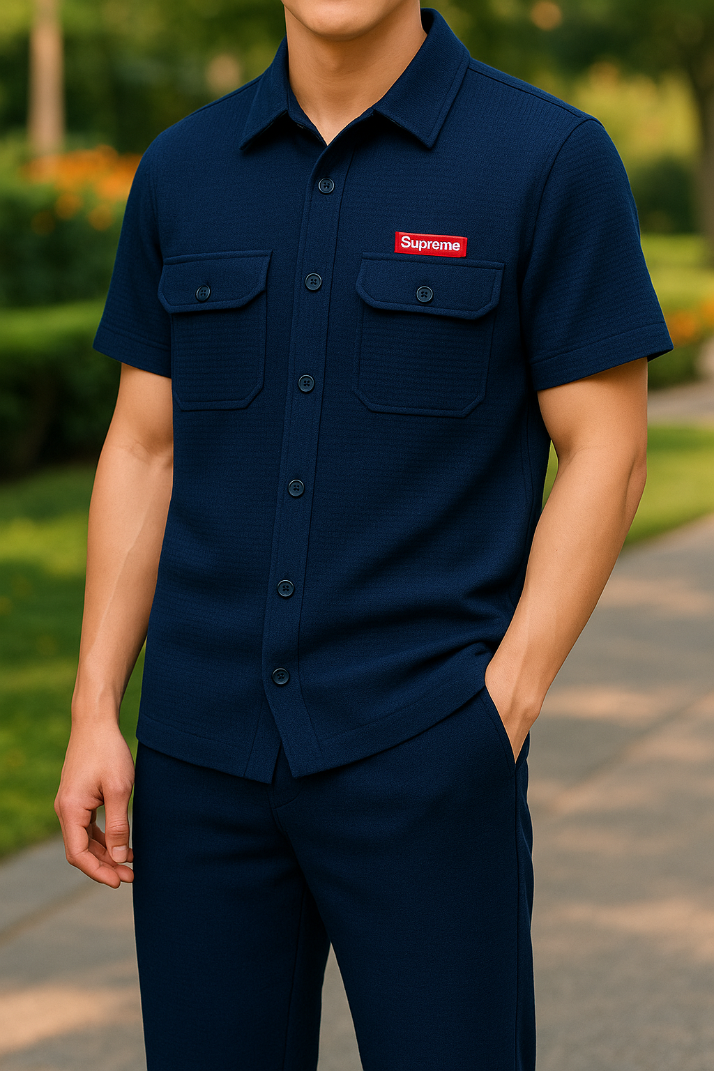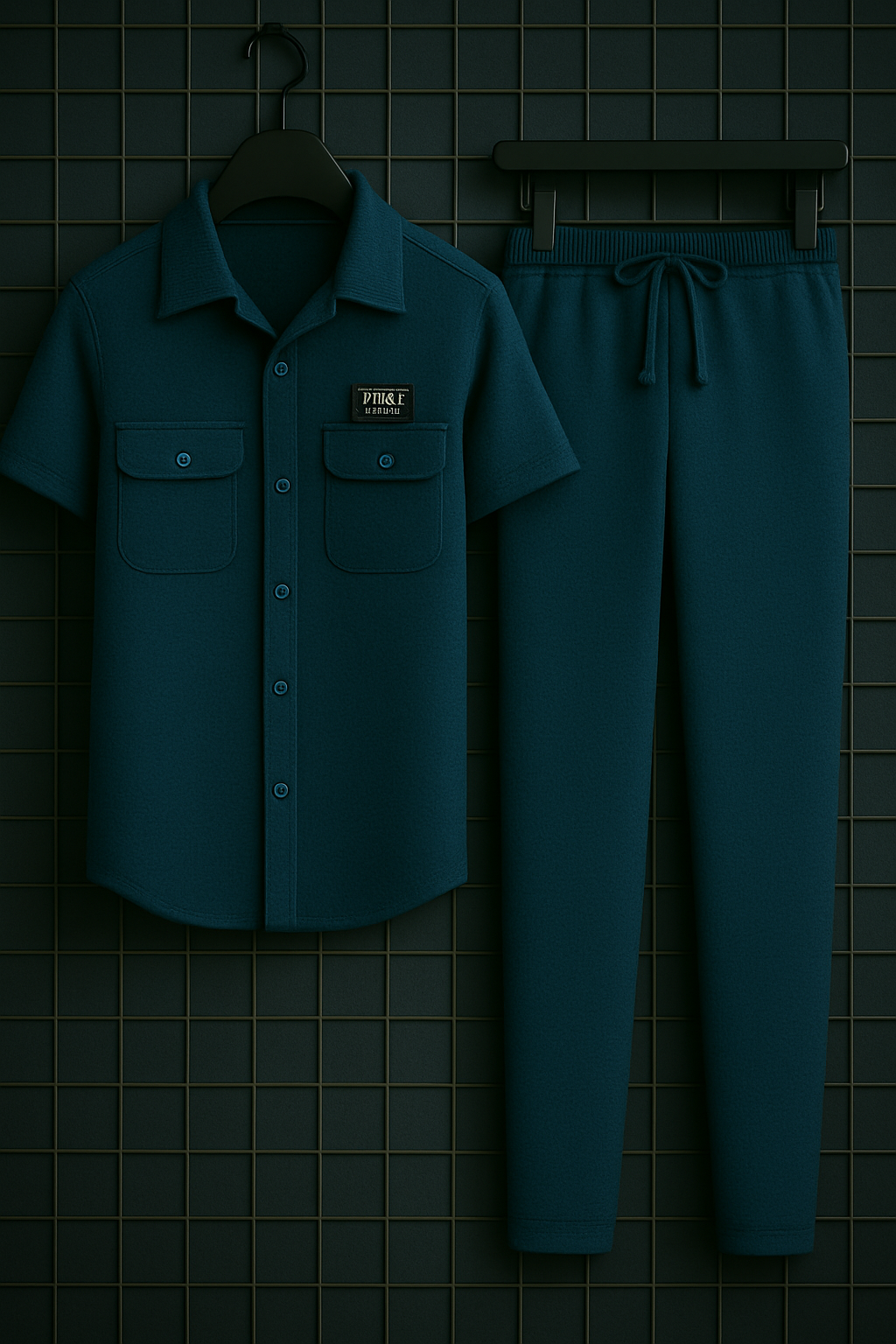 New Safari Waffle Design Tracksuit Set (Button shirt+Trouser) Blue